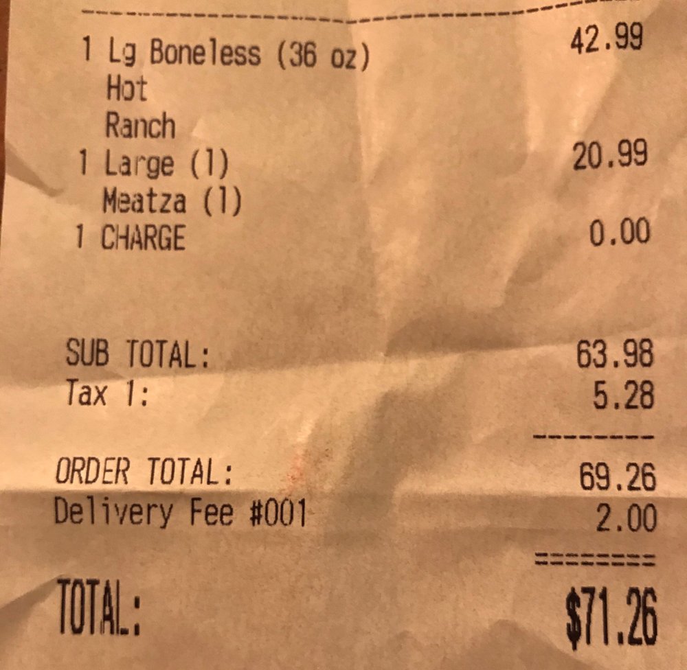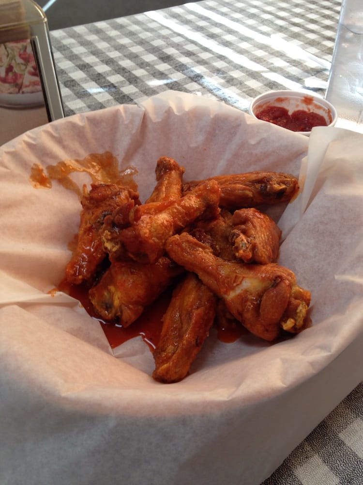 Garlic butter, chicken, buffalo sauce, ranch (on the side).